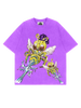 A soft lilac canvas carries a fiercely hand drawn hornet, rendered in charged yellows and smoky whites, stinger first. It is not just an insect, it is an attitude. It is small, fast, and impossible to ignore. The artwork sits oversized and wraps subtly across the body, with a secondary mini mark near the hem, like a warning sign that repeats itself. The graphic has that raw, sketched energy, you can almost feel it buzz.