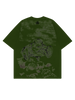 A muted green base carries a turtle emerging through layered, washed brush textures, almost camouflaged, almost hidden. The strokes feel worn, dragged, patient. Nothing about this piece is rushed, and that’s exactly the point.